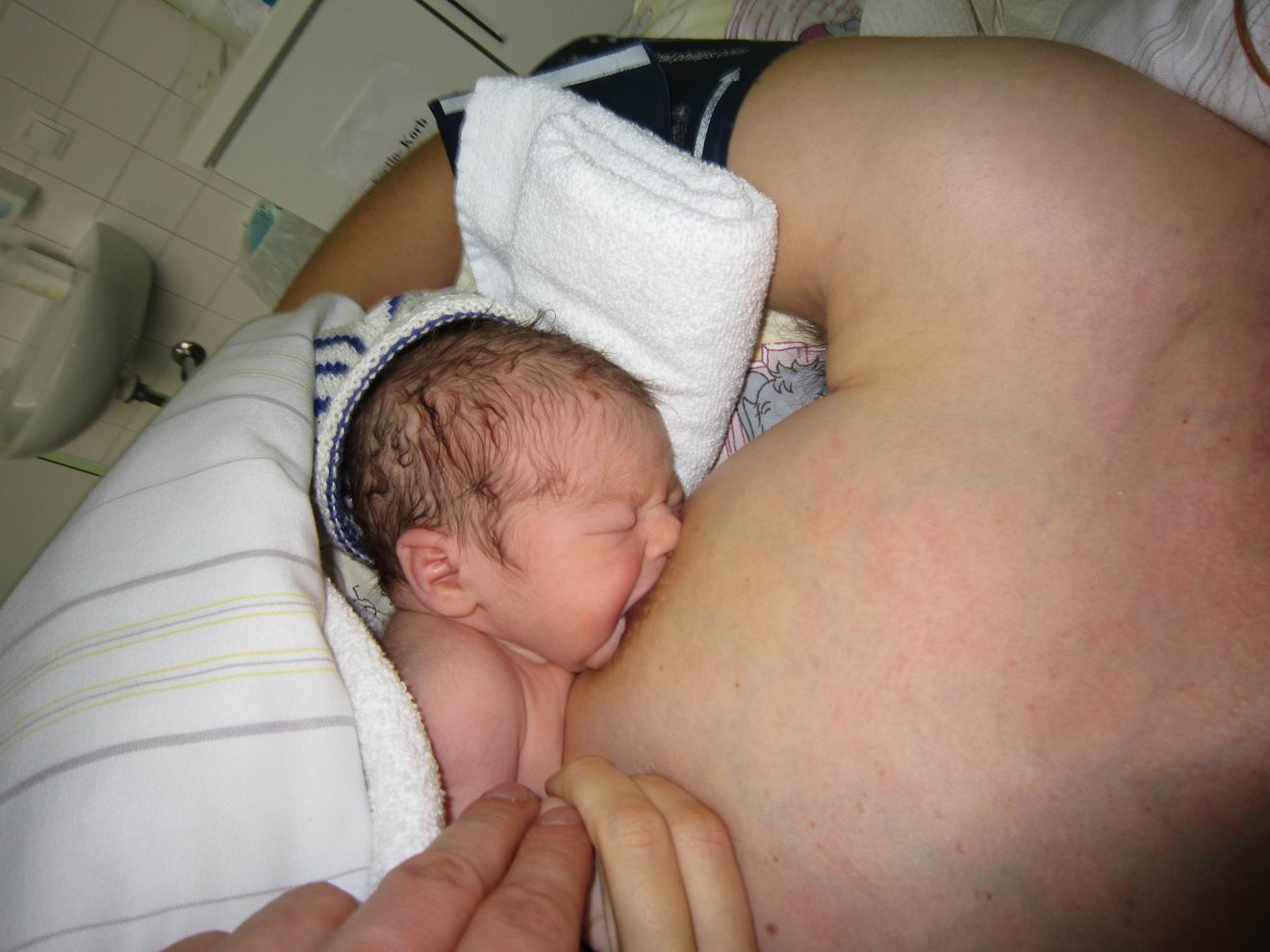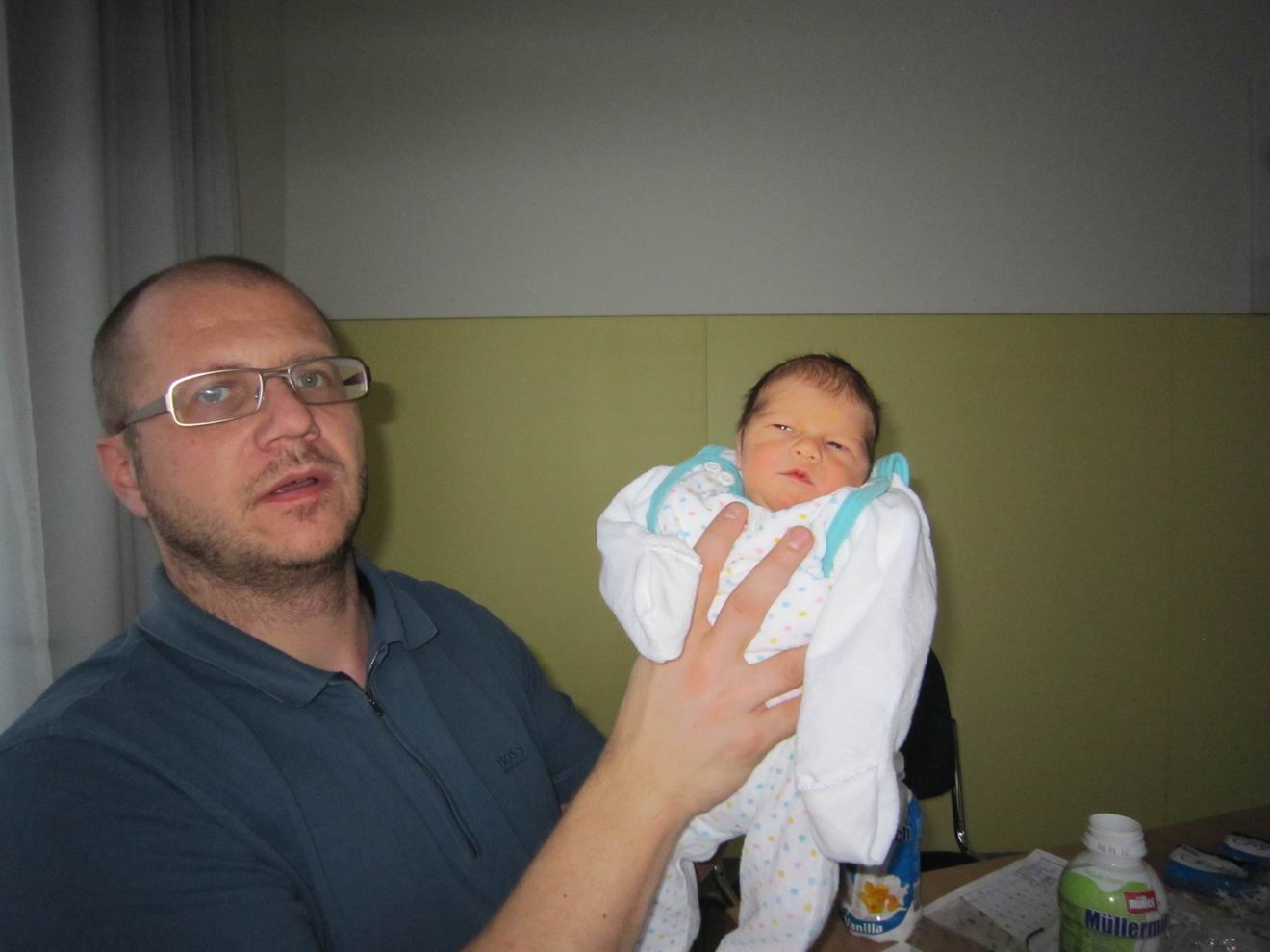... waren sehr schwer für Anja, da sie Alwin per Kaiserschnitt entbunden hat. Beim Kaiserschnitt von Alina durfte Alex nicht mit in den OP, und hat das Baby erst nach unendlich langer Wartezeit gesehen. Anja noch später - sie hatte eine Vollnarkose. Diesmal hat Anja sich tapfer für eine Spinalanästhesie bereit erklärt. Diese hatte neben einigen anderen Vorteilen gegenüber der Vollnarkose den Vorteil, dass "Geburtshelfer" Alex bei der Operation von Anfang bis Ende dabei sein durfte, und er Alwin direkt nach der "Entnahme" in die Hand gedrückt bekommen hat. Dies war ein großer Moment.